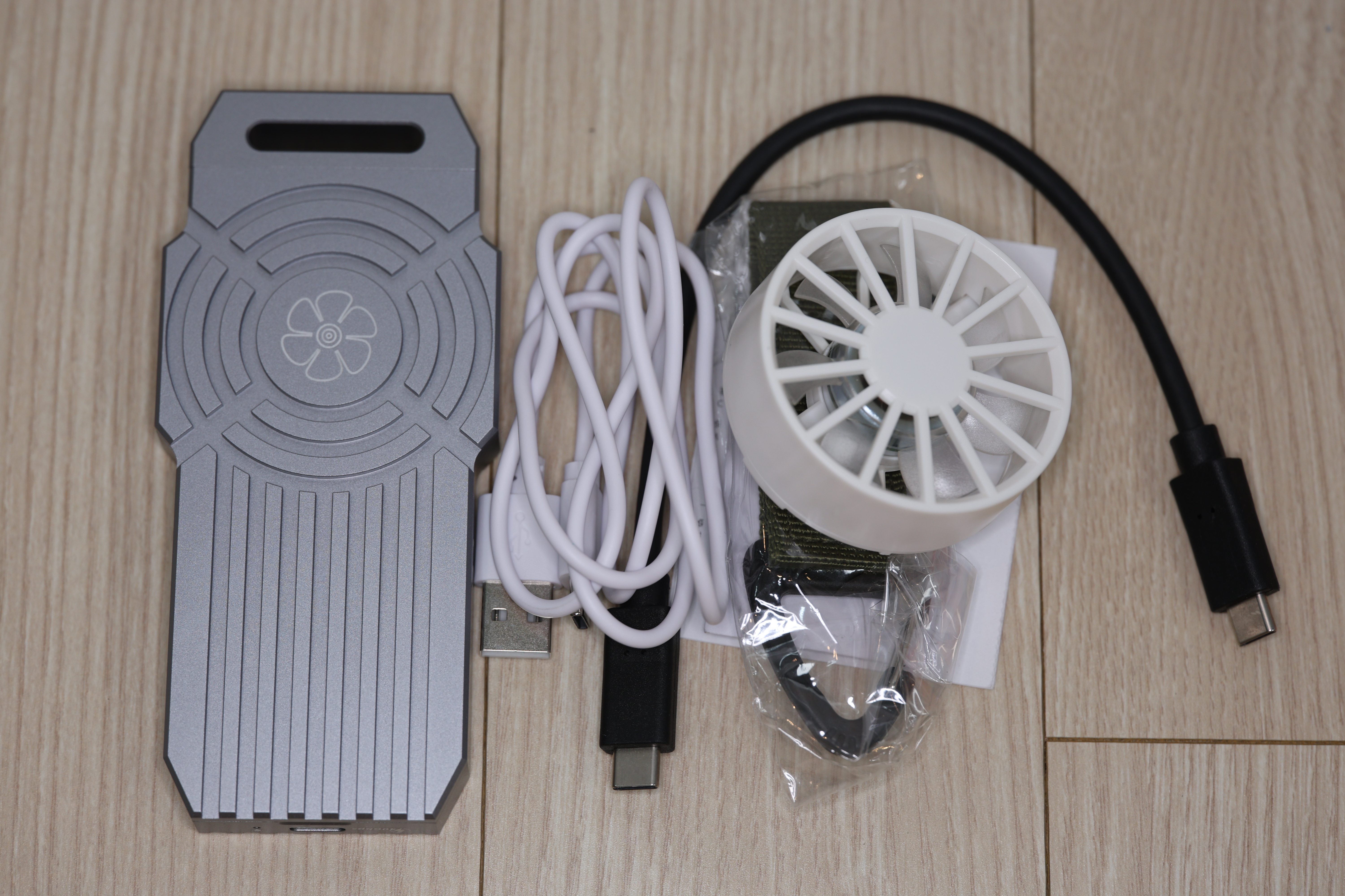 별도로 제공되는 쿨러는 USB-C로 전원을 공급받으며 자석이 내장되어 있어 제품에 직접 붙일 수 있도록 되어있습니다.