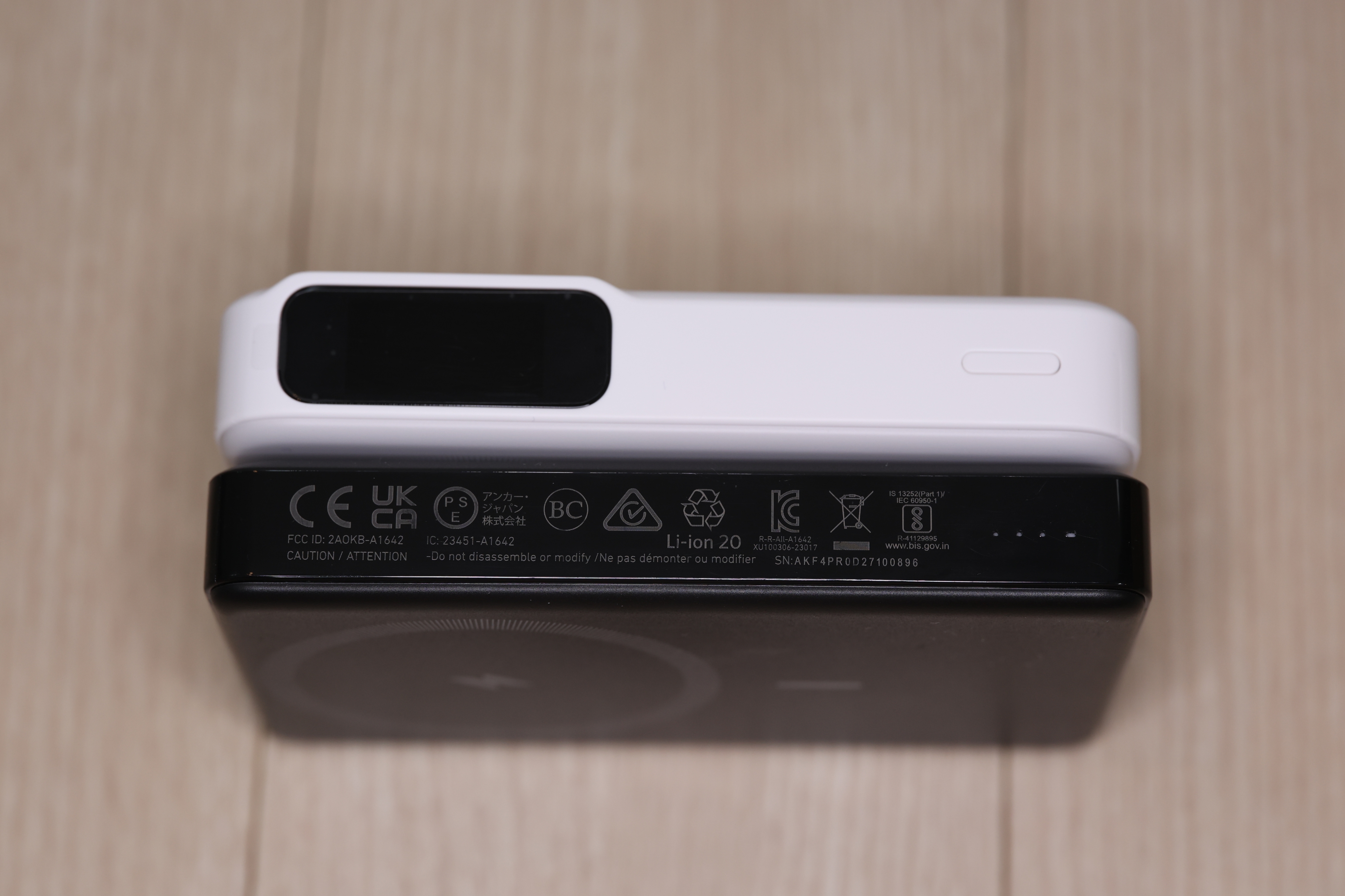사용 중이던 Anker 334 MagGo Battery 제품과 비교하면 제품 사이즈는 비슷하지만 무게가 50g 정도로 더 무겁고