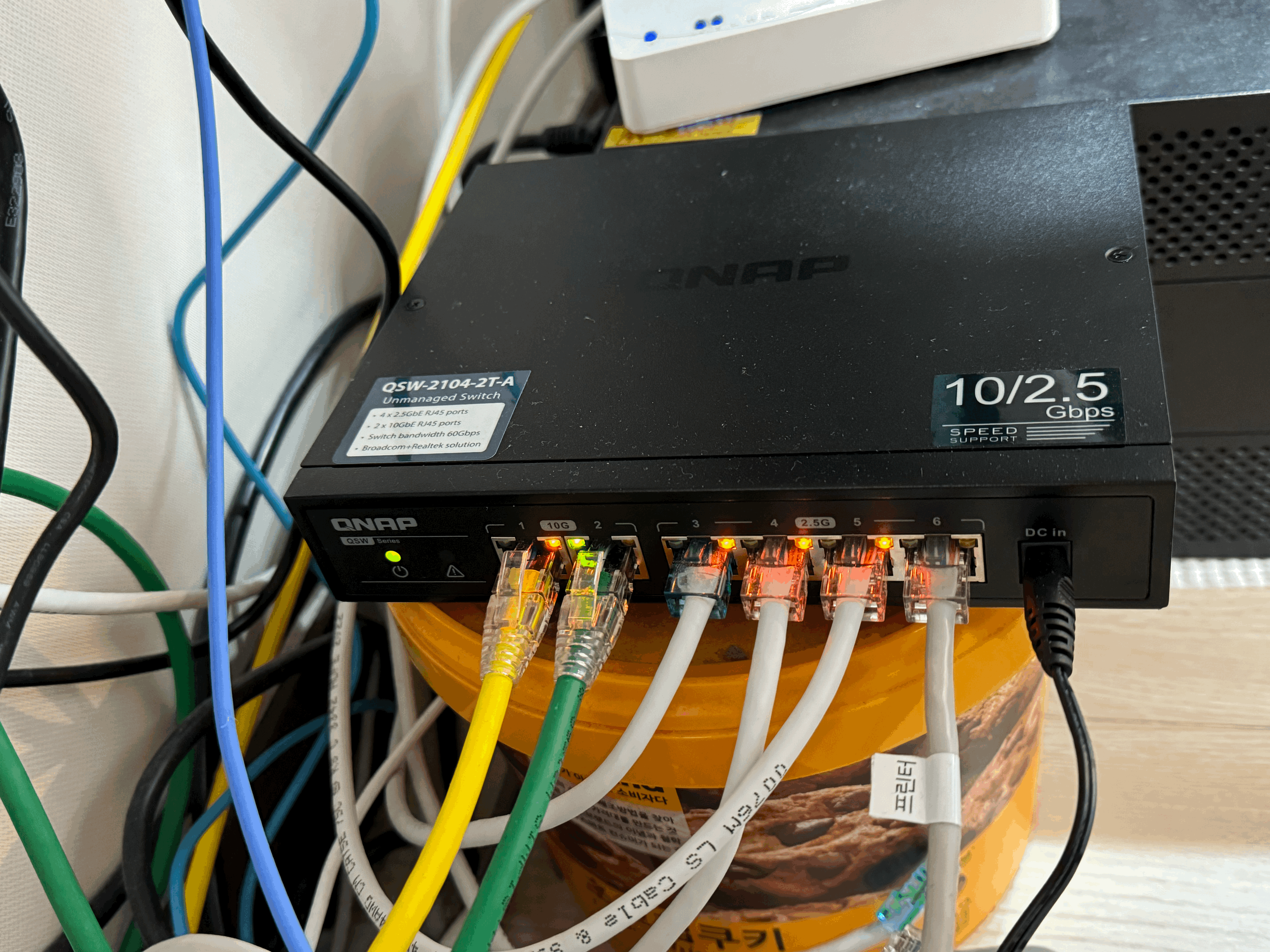2개의 포트는 10G / 나머지 4개의 포트는 2.5G로 동작하는 스위치허브입니다.