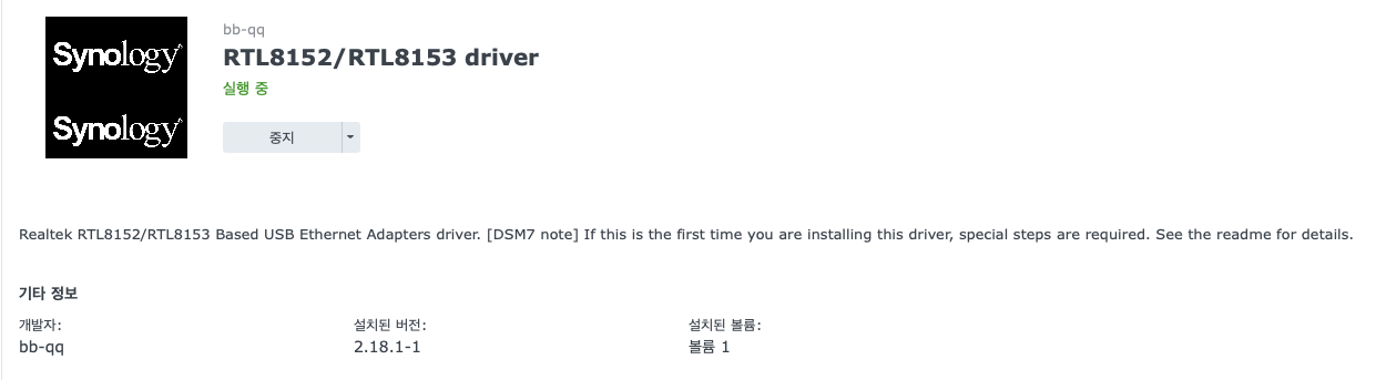 시놀로지에 WT-UT5 RTL8157 제품을 USB이더넷으로 활용 가능하다는 글을 보고 시스템에 적용해봤습니다.