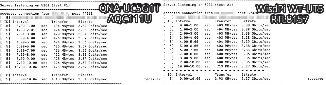 네트워크 인식은 잘되고 실제로 5Gbps 대역폭에 한계에 갇히긴 합니다만 AQC111U 칩셋을 사용한 QNA-UC5G1T와 비교했을때