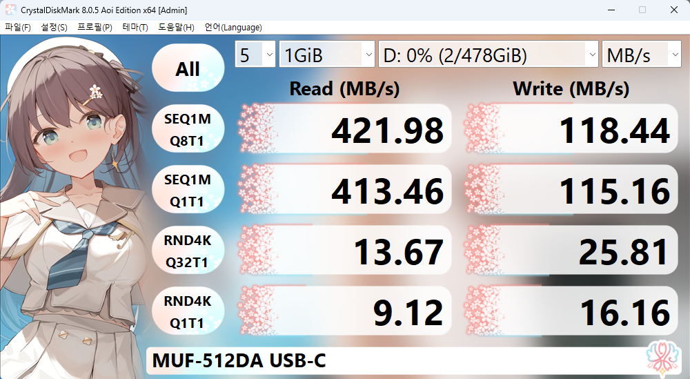 추가로 같은 USB를 윈도우PC에서 테스트한 결과입니다.