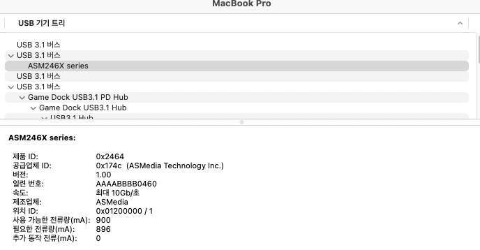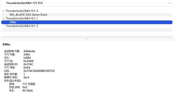 M1 Pro 맥북에 테스트한 결과 ASMedia 246x 40Gbps USB4로 드라이버가 정상적으로 올라오며