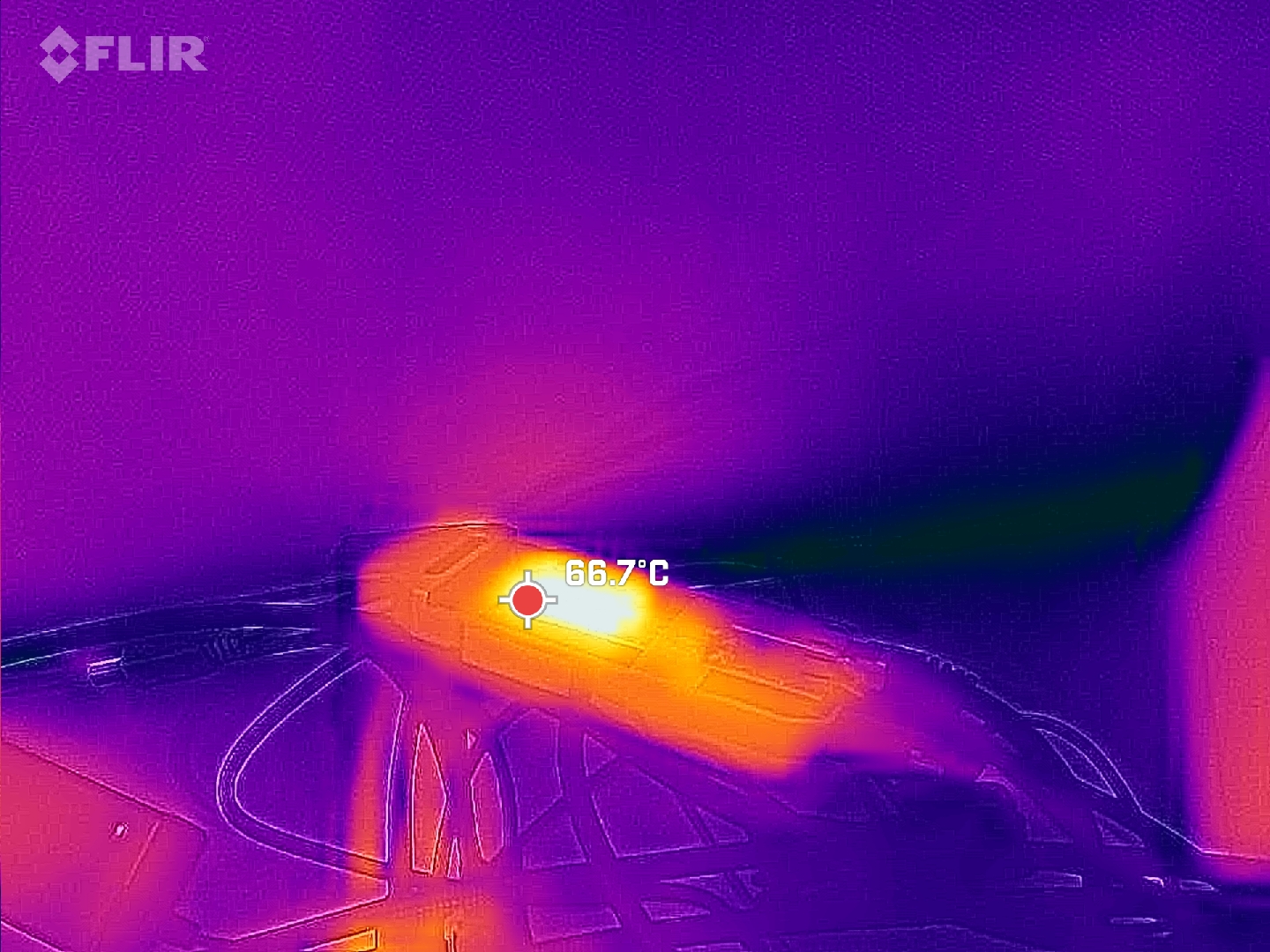 그리고 외부 방열판을 제거한 상태로 내부 방열판의 온도는 약 66도 정도로 올라가는 모습이네요.